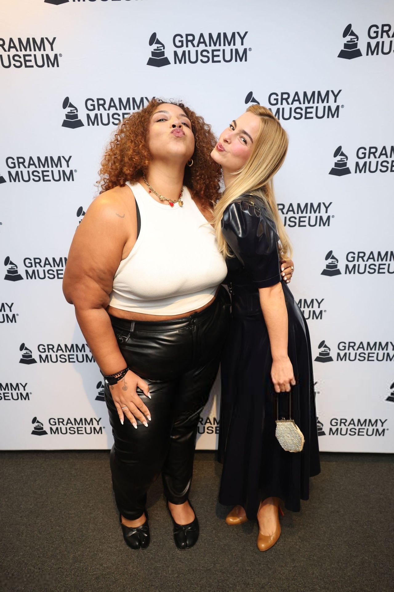 Popular celebrities often use high-profile events to showcase a significant style evolution, and Addison Rae used her appearance at the Grammy Museum’s “A New York Evening with Addison Rae” on October 4, 2025, to embrace a sophisticated goth-chic aesthetic. Please note: This analysis is based solely on the visible portion of the outfit, as the image is cropped above the waist. Rae opts for a striking black latex garment, which, based on the user-provided context, is an Atsuko Kudo Alejandra Dress. The garment’s material provides a high-gloss, almost liquid sheen that catches the light dramatically against the white backdrop.