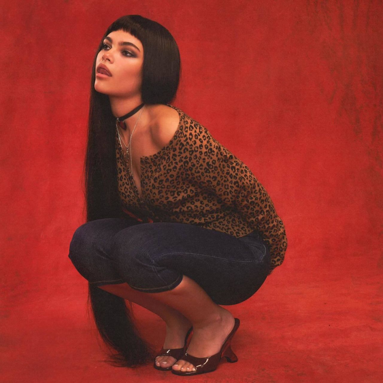 Young star Ariana Greenblatt opts for a distinct throwback vibe in a new photoshoot, promoting what appears to be a capsule or collection for Revolve in the Fall 2025 season. The editorial image captures a relaxed, cool-girl aesthetic that taps directly into 90s and Y2K cultural touchpoints.