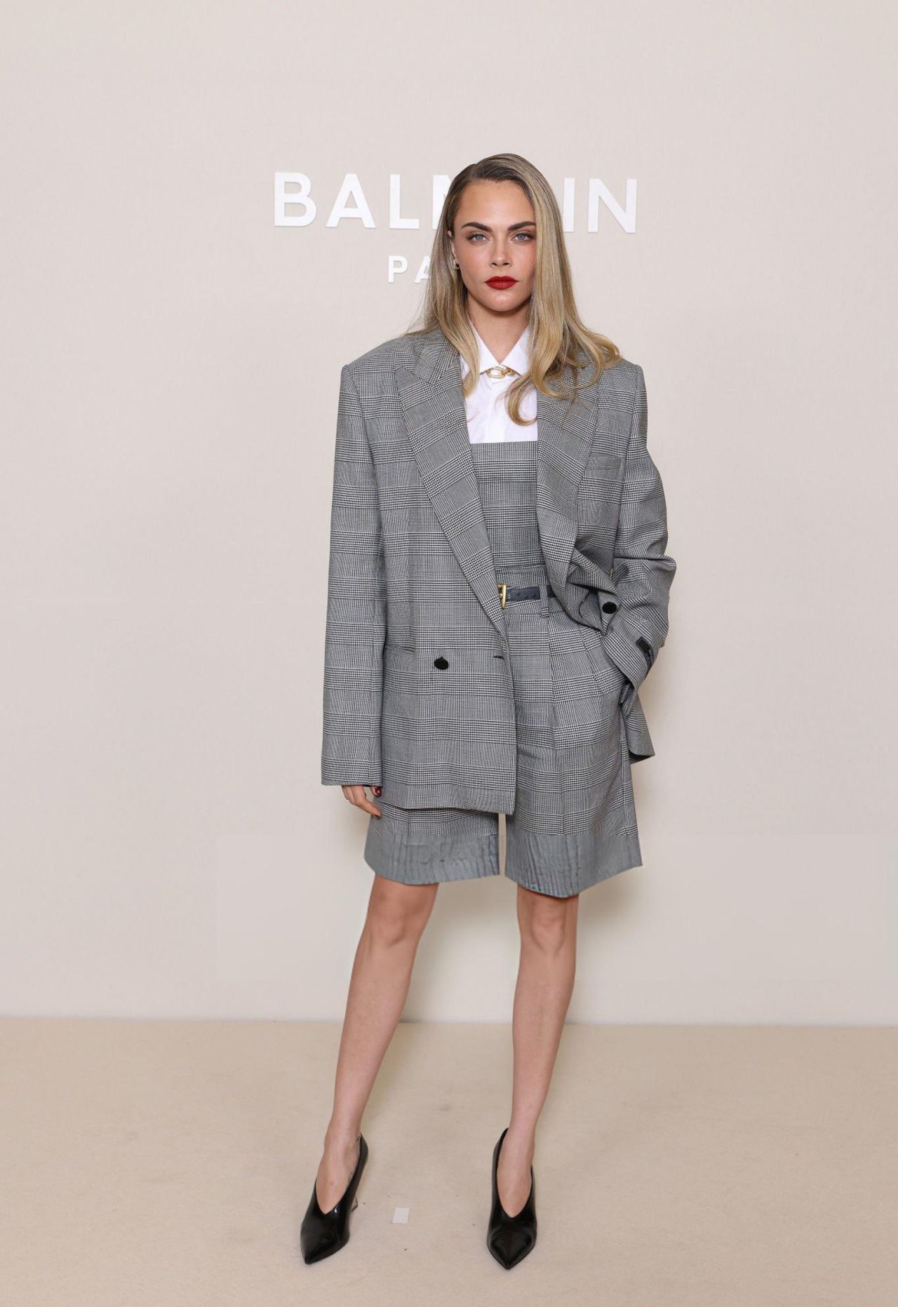 Cara Delevingne asserts her position as a front row fashion fixture, channeling a contemporary take on power dressing as she attends the Balmain Womenswear Spring/Summer 2026 show in Paris, France, on October 1, 2025. The look—a playful yet polished marriage of menswear tailoring and a quirky romper silhouette—perfectly embodies the sophisticated edge and structural experimentation often championed by the French house. This appearance at the Hotel InterContinental marks another stylish moment in her continuing fashion evolution. For more on the model-turned-actor, one can explore her career history at Cara Delevingne IMDb.
