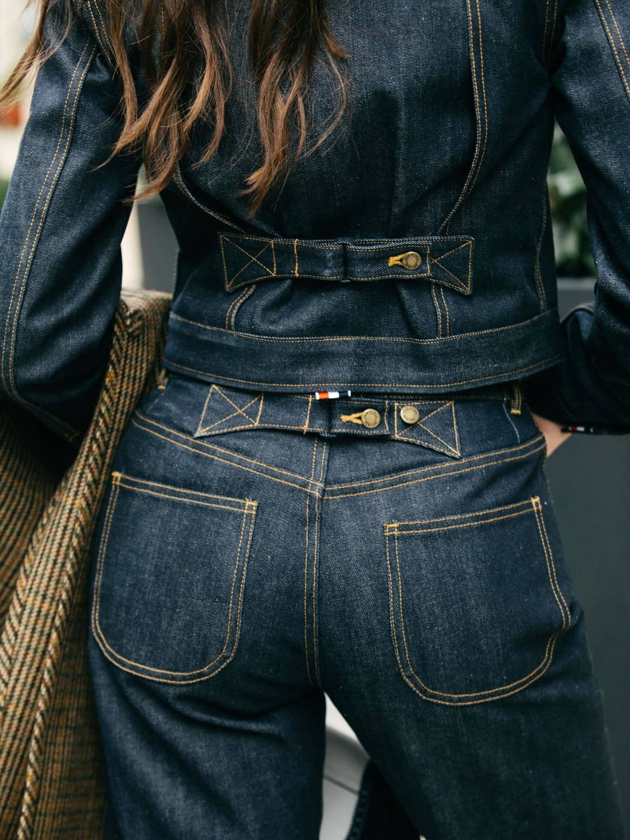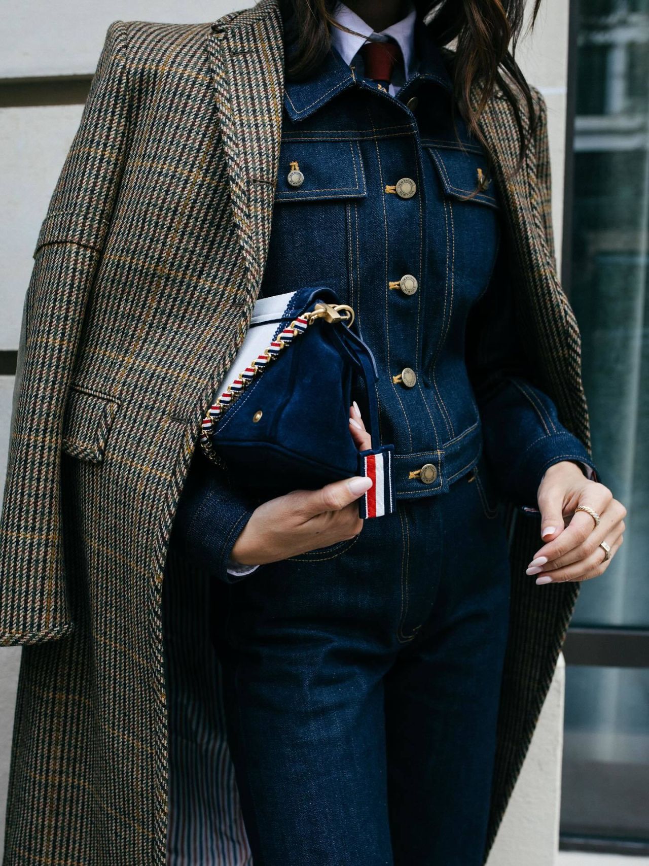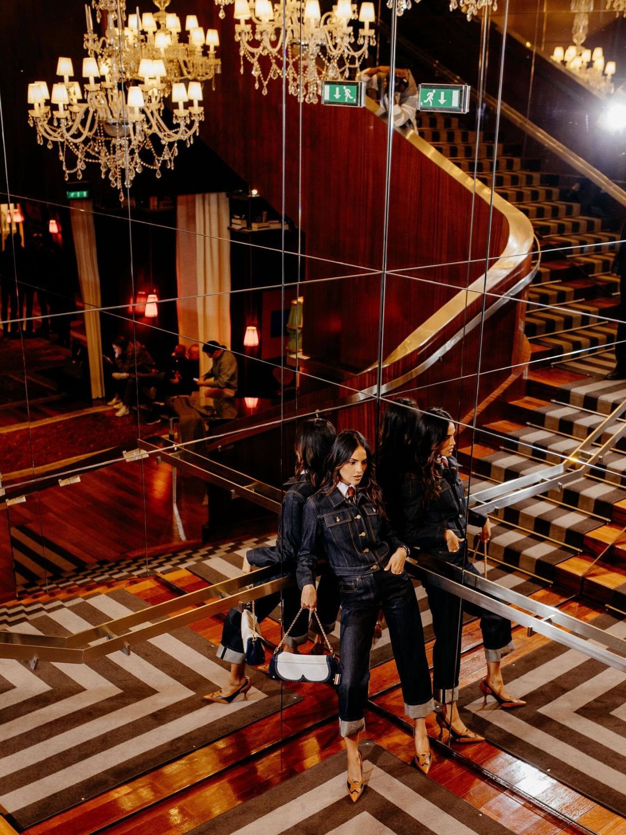 Gonzalez’s choice reflects a growing trend of elevated denim, where traditionally casual fabrics are reimagined with tailored precision. This look aligns with the broader movement in fashion toward gender-fluid tailoring and utilitarian chic, blending comfort with sophistication. The denim boiler suit, a staple of workwear, is transformed into a statement piece through layering and accessorizing, making it suitable for both editorial spreads and street style.