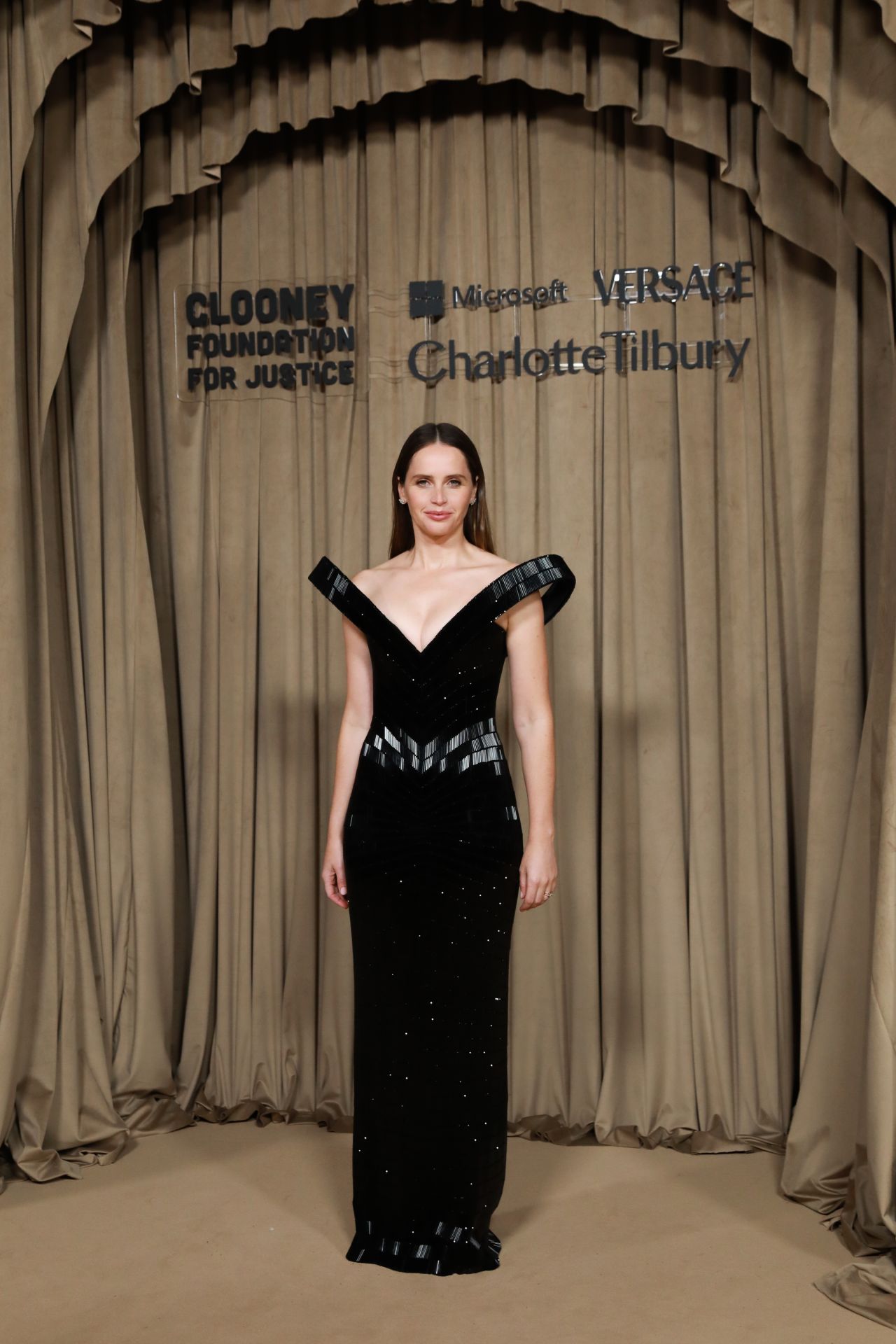 Felicity Jones made a sophisticated appearance at the Clooney Foundation for Justice’s The Albies ceremony at London’s Natural History Museum on October 3, 2025. The British actress, known for her refined red carpet choices, selected a striking black gown from Tamara Ralph’s Fall 2025 Couture collection that exemplified architectural elegance through its geometric construction. This formal charity event, which recognizes justice advocates worldwide, provided an appropriate backdrop for Jones’s thoughtful fashion statement that balanced contemporary design with timeless sophistication.