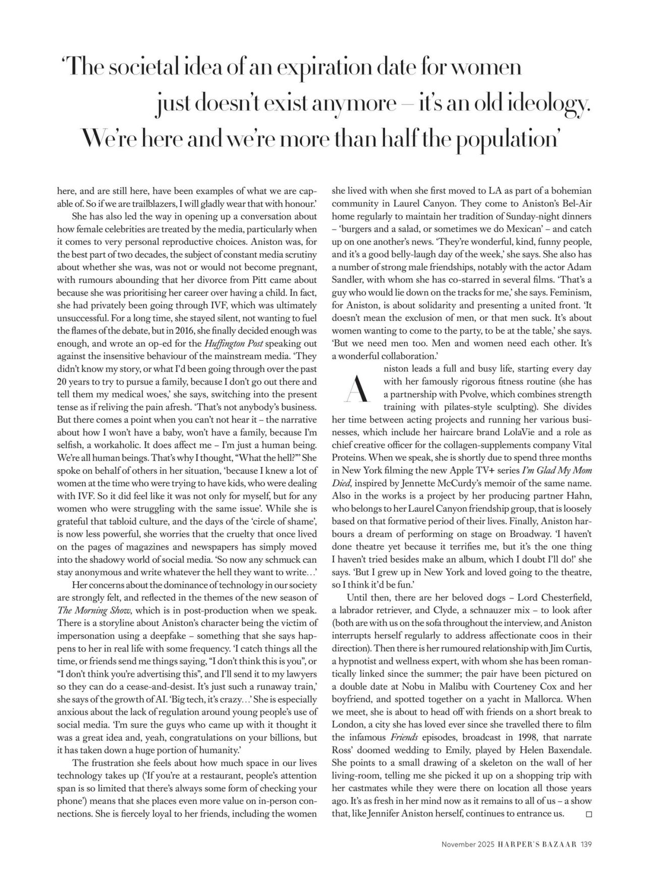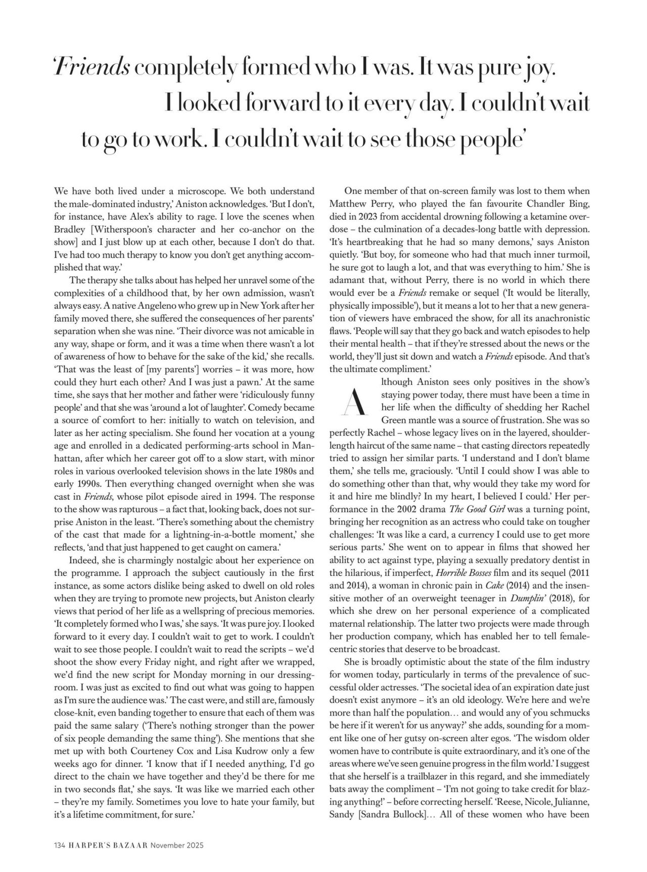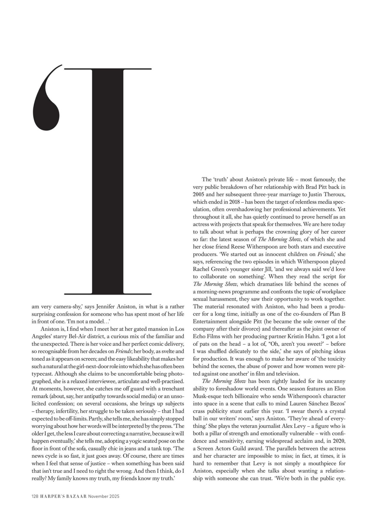 Jennifer Aniston graces the cover and pages of Harper’s Bazaar UK November 2025, presenting a dynamic fashion spread that balances her signature minimalist sensibility with unexpected theatrical elements. The celebrity photoshoot features contrasting designer outfit choices, affirming her status as an enduring style icon capable of embracing varied trends.