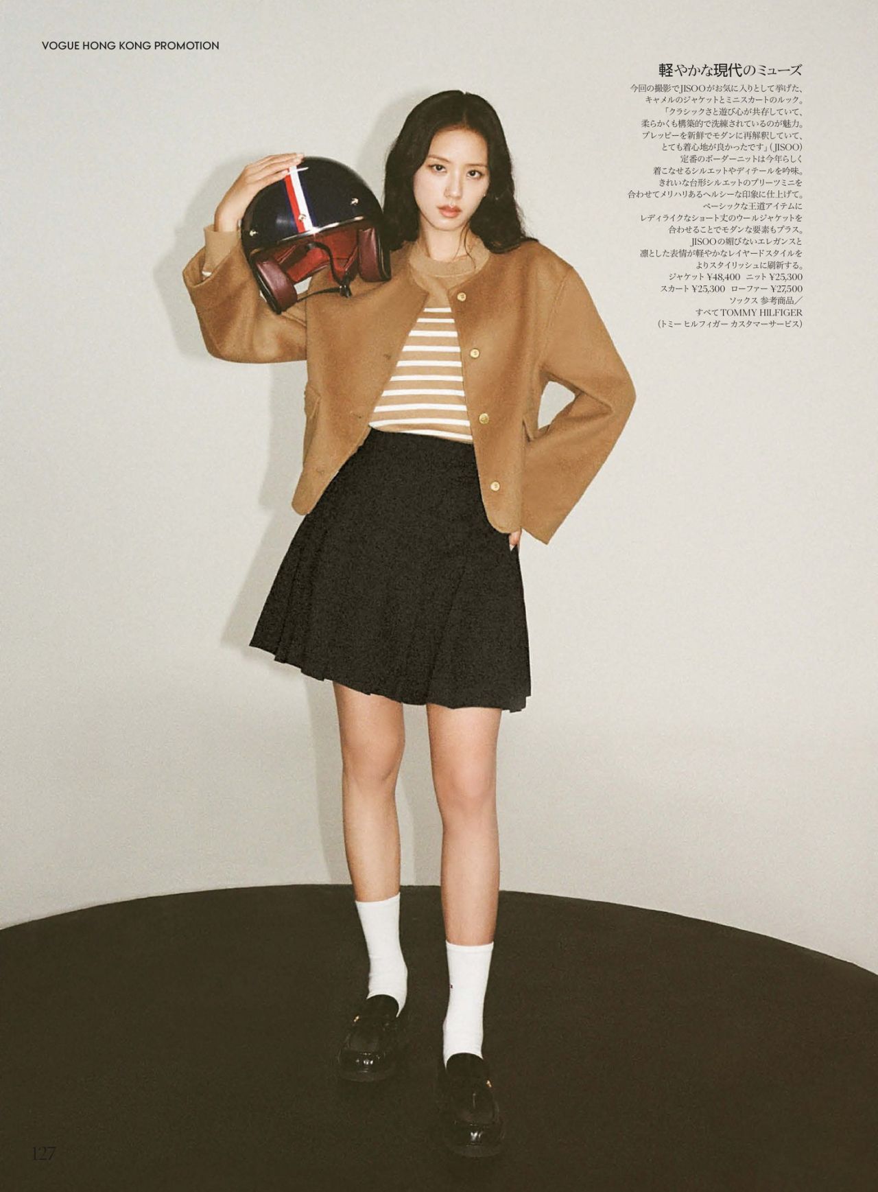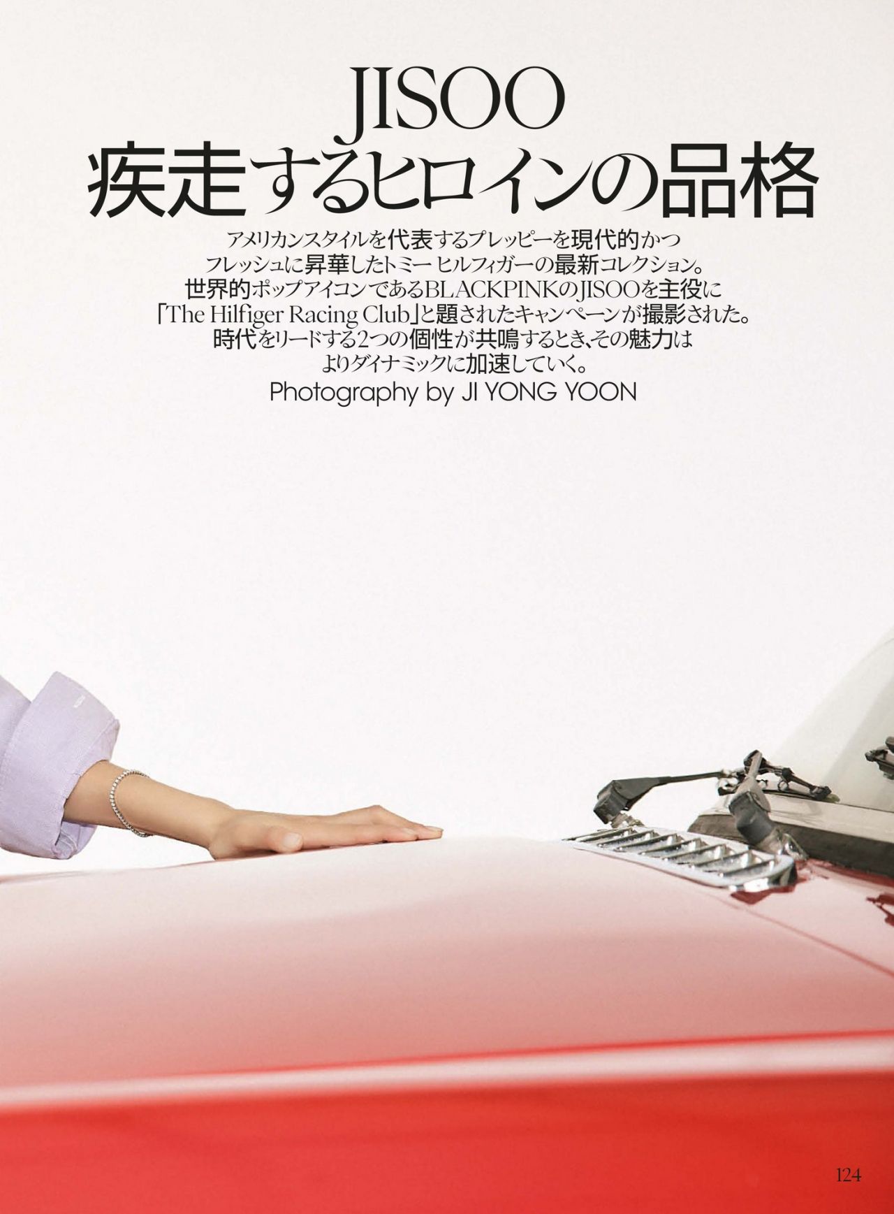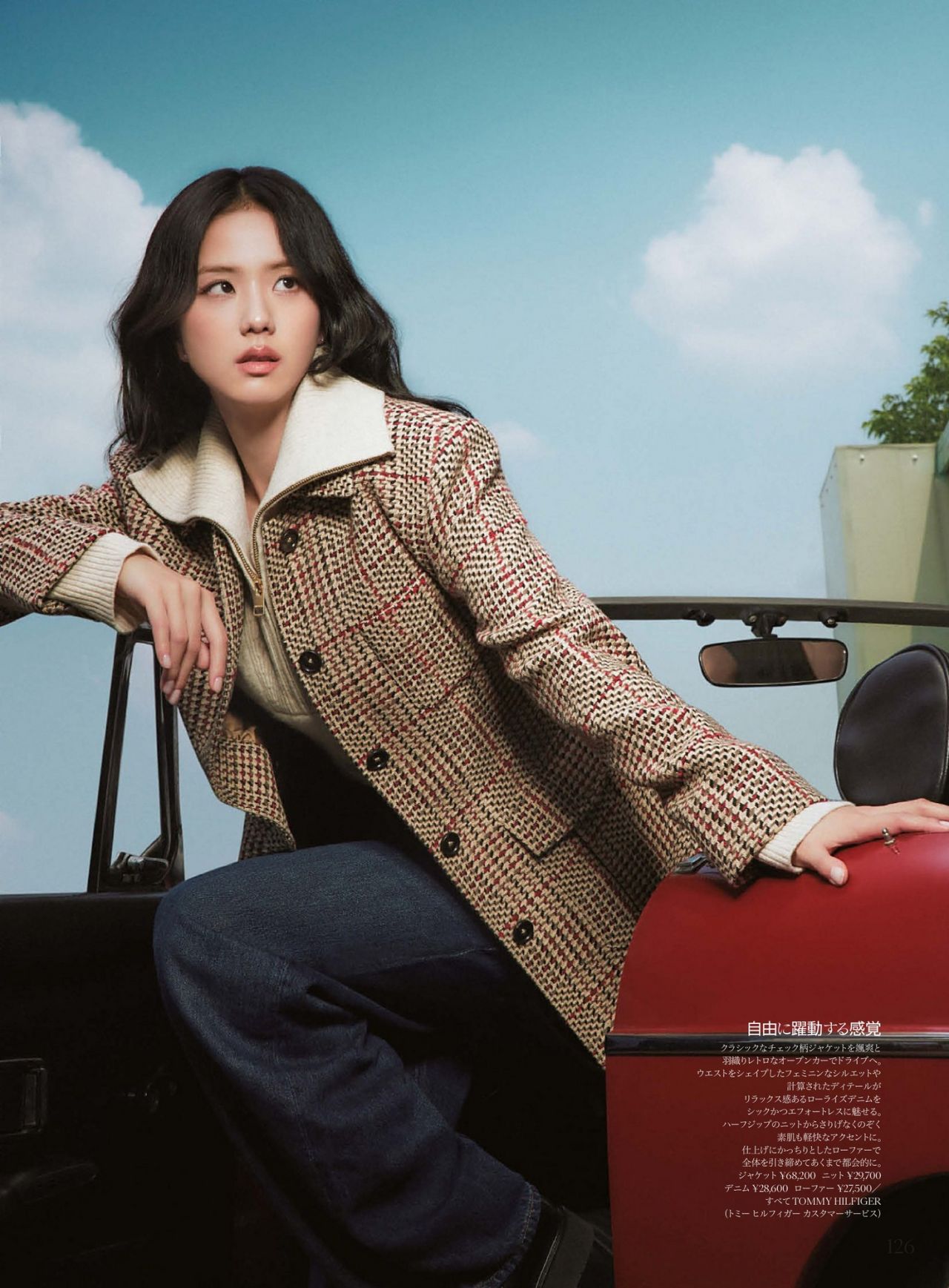 Jisoo of BLACKPINK, a global pop icon, continues to establish her presence in high fashion editorials, appearing in the November 2025 issue of Vogue Japan. The photoshoot captures a mood of relaxed, automotive elegance, presenting a sophisticated take on heritage preppy style. The visual evidence, combined with text on an accompanying page, confirms that the editorial is centered around a modern, fresh interpretation of Americana style, likely associated with a Tommy Hilfiger collection. Her successful blend of music and fashion influence is well-documented in the media.