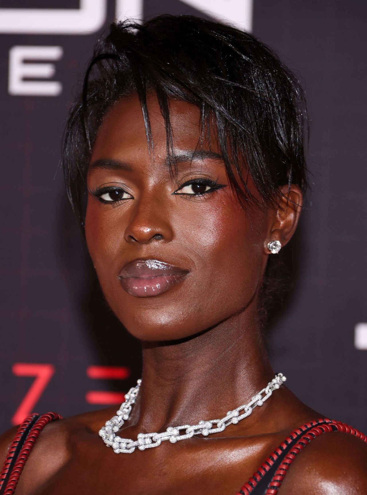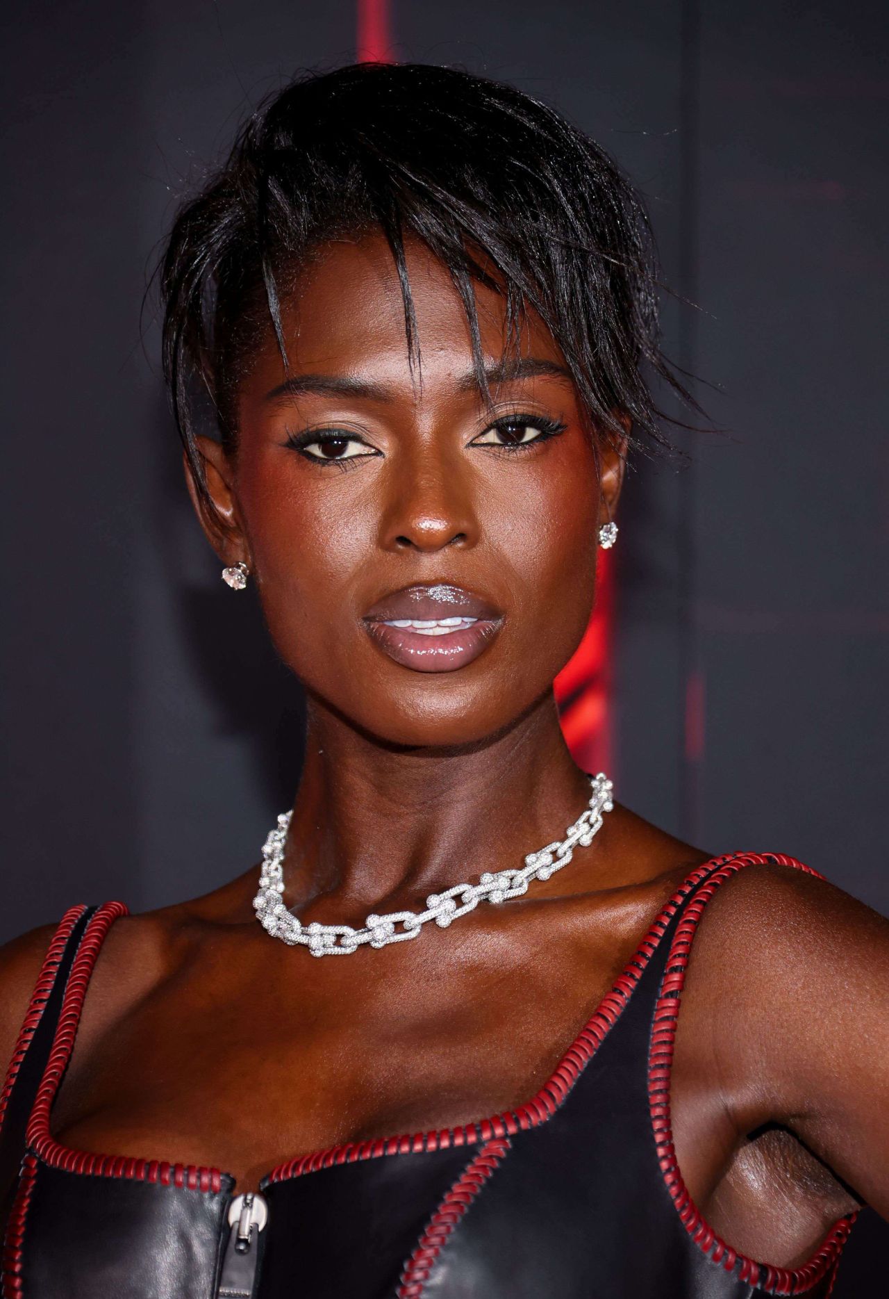Jodie Turner-Smith arrived at the “Tron: Ares” Los Angeles Premiere on October 6, 2025, delivering a look that perfectly fused high fashion with cinematic theme. The model-actress chose a floor-length black leather gown with a dramatic mermaid-style flared skirt—a bold choice for a major red carpet.