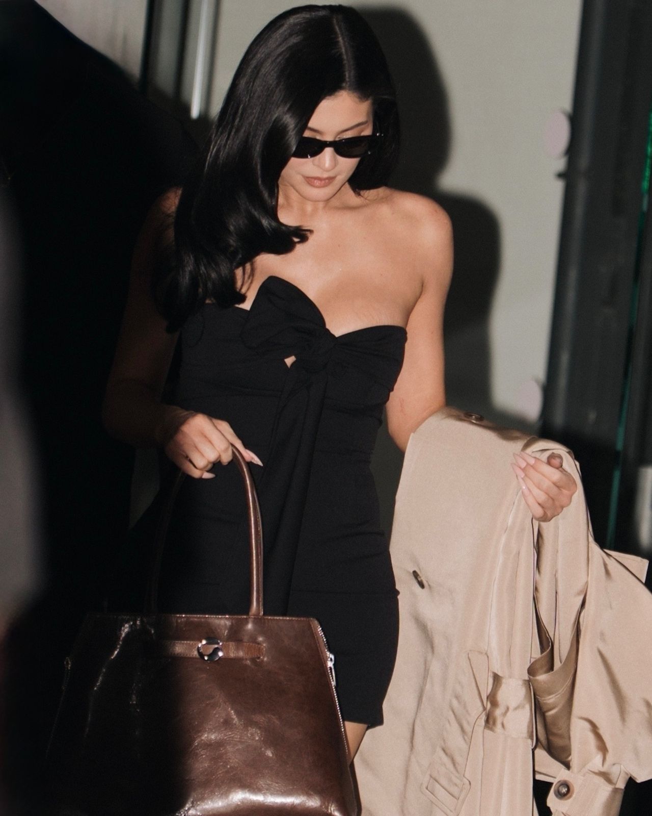 This ensemble is a masterclass in “Quiet Impact”, aligning perfectly with the shift towards refined dressing seen across fashion week capitals. The choice of a structured, sculptural piece, rather than overt embellishment, allows the Coperni bag—a brand known for its future-forward, architectural designs—to integrate seamlessly. The look echoes the disciplined elegance championed by designers like Anthony Vaccarello at Saint Laurent, trading maximalist drama for sharp, considered proportions. It is a calculated move that elevates Jenner’s status from simply a trend wearer to a thoughtful fashion show guest capable of dictating her own streamlined style narrative.