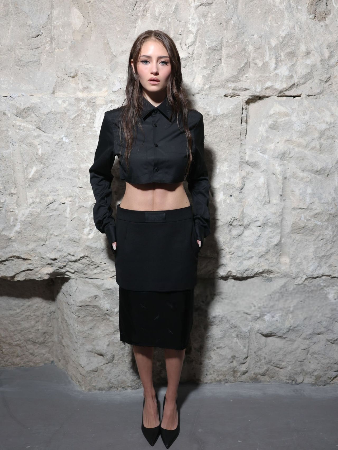 Model Leni Klum attends the Vetements Ready-to-Wear Spring/Summer 2024 show in Paris, France, embracing a sharp, subversive take on all-black minimalism for her front row fashion moment. Klum, who is building a notable profile as a rising star among popular celebrities, opts for a look that plays with proportion, structure, and high contrast.