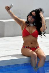 The model exuded quiet confidence in a minimalist, reddish-brown bikini, its rich, earthy hue providing a striking contrast against the pale sand and cerulean waters. The top, a bandeau or subtle scoop-neck, offered understated support, while the high-cut bottoms elongated her frame, celebrating a timeless silhouette. In one frame, this sleek swimwear was paired with a dramatic, sheer, floor-length skirt in a darker tone—perhaps a deep brown or black—featuring an intricate, almost crocheted pattern that added a touch of bohemian mystery as it kissed the water’s edge.