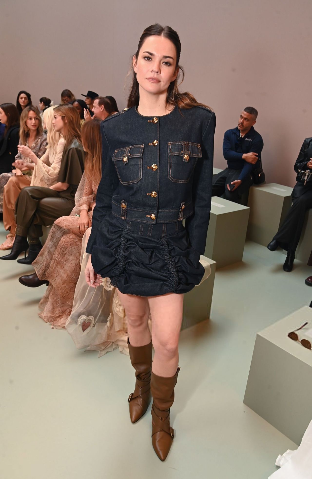 Maia Mitchell, a familiar face among celebrity photos from major global events, was captured in the front row at the Zimmermann show during Paris Fashion Week. The look is a sophisticated take on coordinated separates, leaning into a refined utilitarian chic.