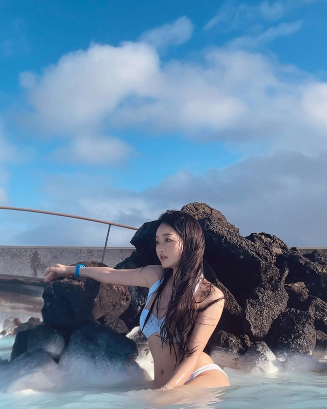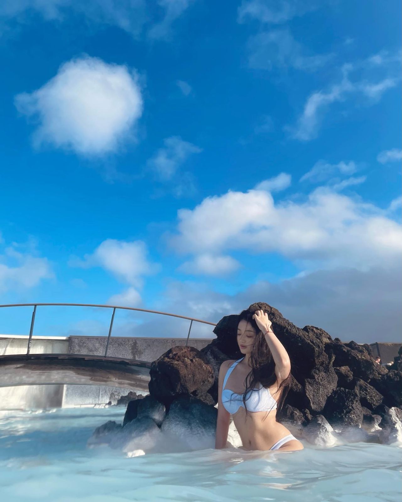 In a striking photoshoot capturing the essence of aspirational wellness, Ming Yue selects a clean, timeless white bikini. The look, styled for a natural thermal setting, confirms her position on the celebrity list of style influencers. The bikini top features a structured, lightly-cupped silhouette with a classic halter neck, which provides both support and a strong, clean line against the skin.