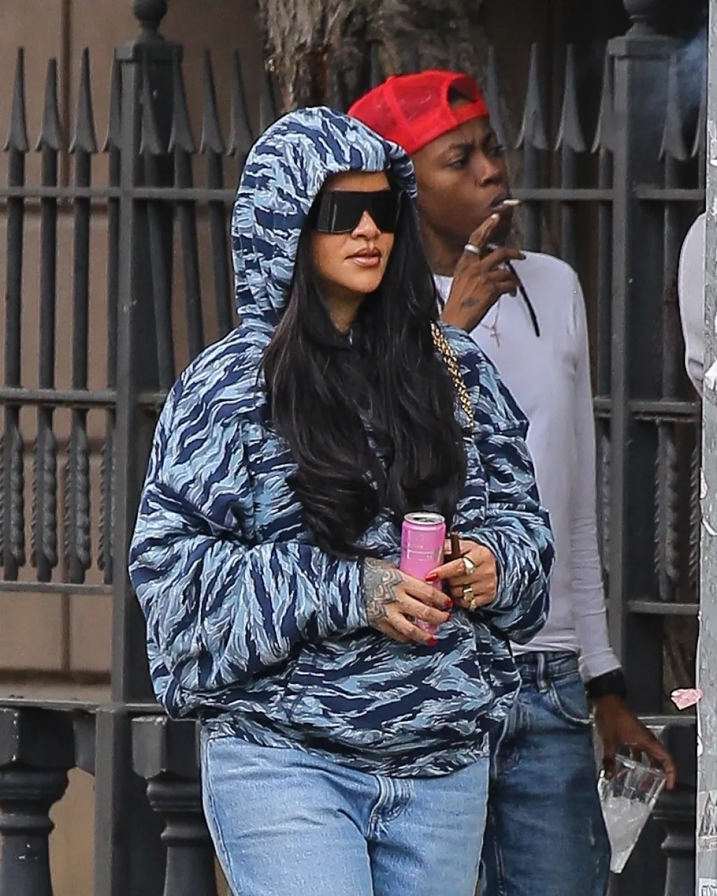 Rihanna in Savage x Fenty Camo Hoodie Brooklyn April 2026 photo 2