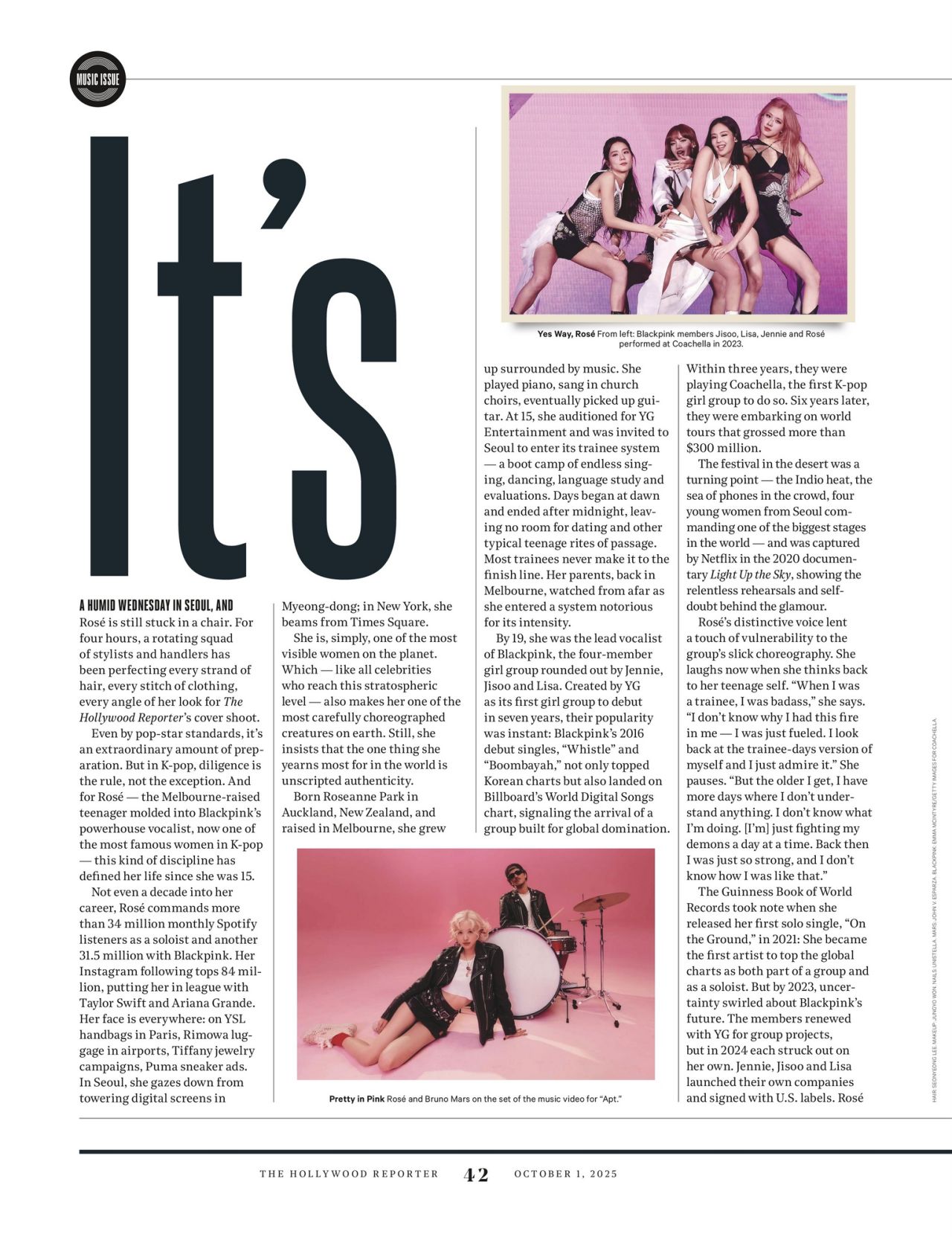 In the October 2025 edition of The Hollywood Reporter, global music and fashion icon Rosé of Blackpink presents an unexpected but highly effective take on rock-and-roll maximalism. The visual core of this styled shoot centers on a high-impact ensemble that boldly contrasts luxury texture with counter-culture grit. The choice of the Coach Leopard Print Faux Fur Coat in Recycled Polyester immediately establishes a thesis of glamorous rebellion, perfectly capturing her versatile appeal as a global force in both music and high fashion—a status reflected in her official Wikipedia profile.