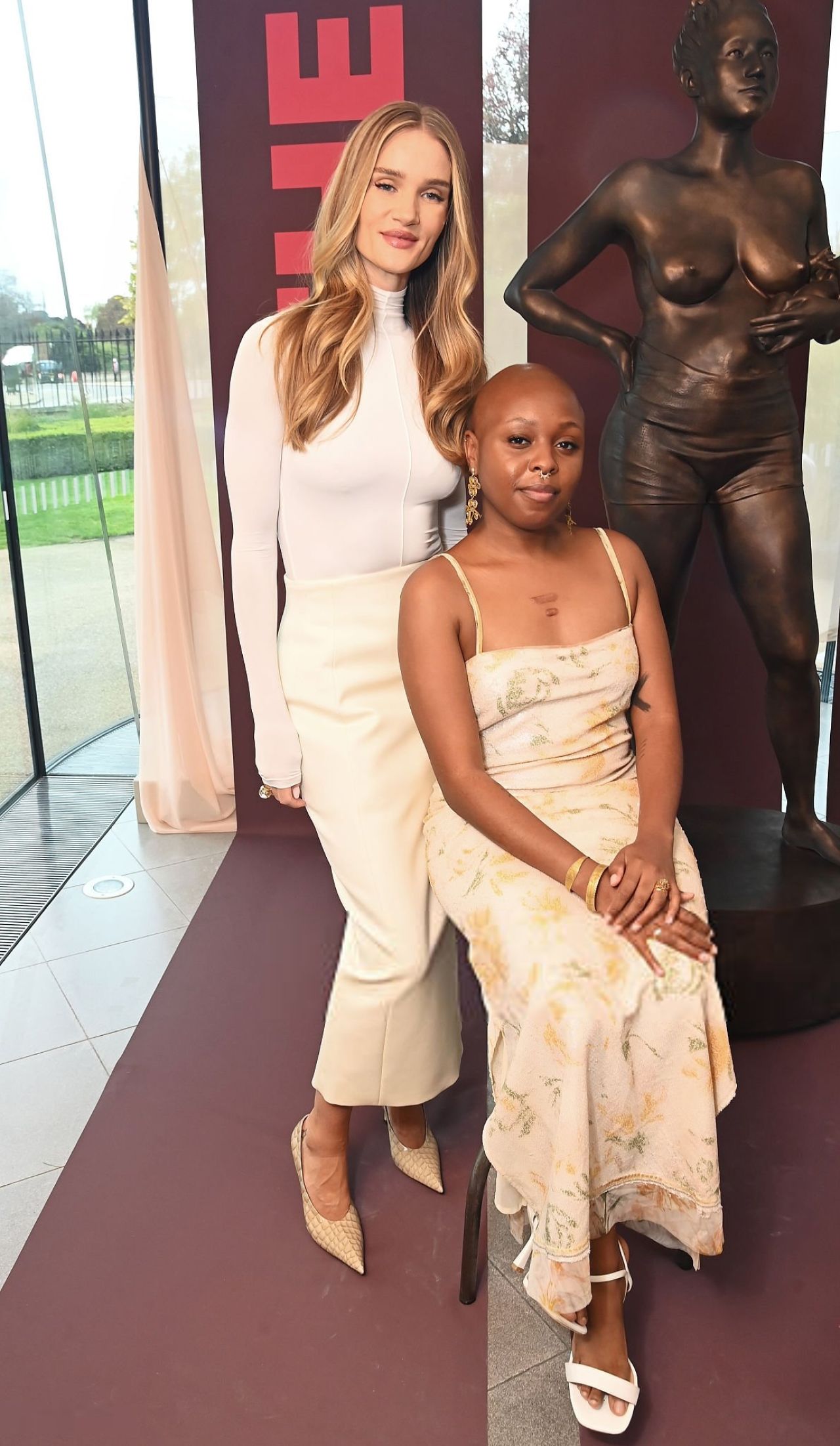 Attending the unveiling of the Mother Vérité statue hosted by Frida in London, England, on October 8, 2025, model Rosie Huntington-Whiteley wore a look that defines modern, sophisticated dressing. Known for her dedication to minimalist perfection, the model’s outfit was entirely cohesive, utilizing a pristine monochrome palette.
